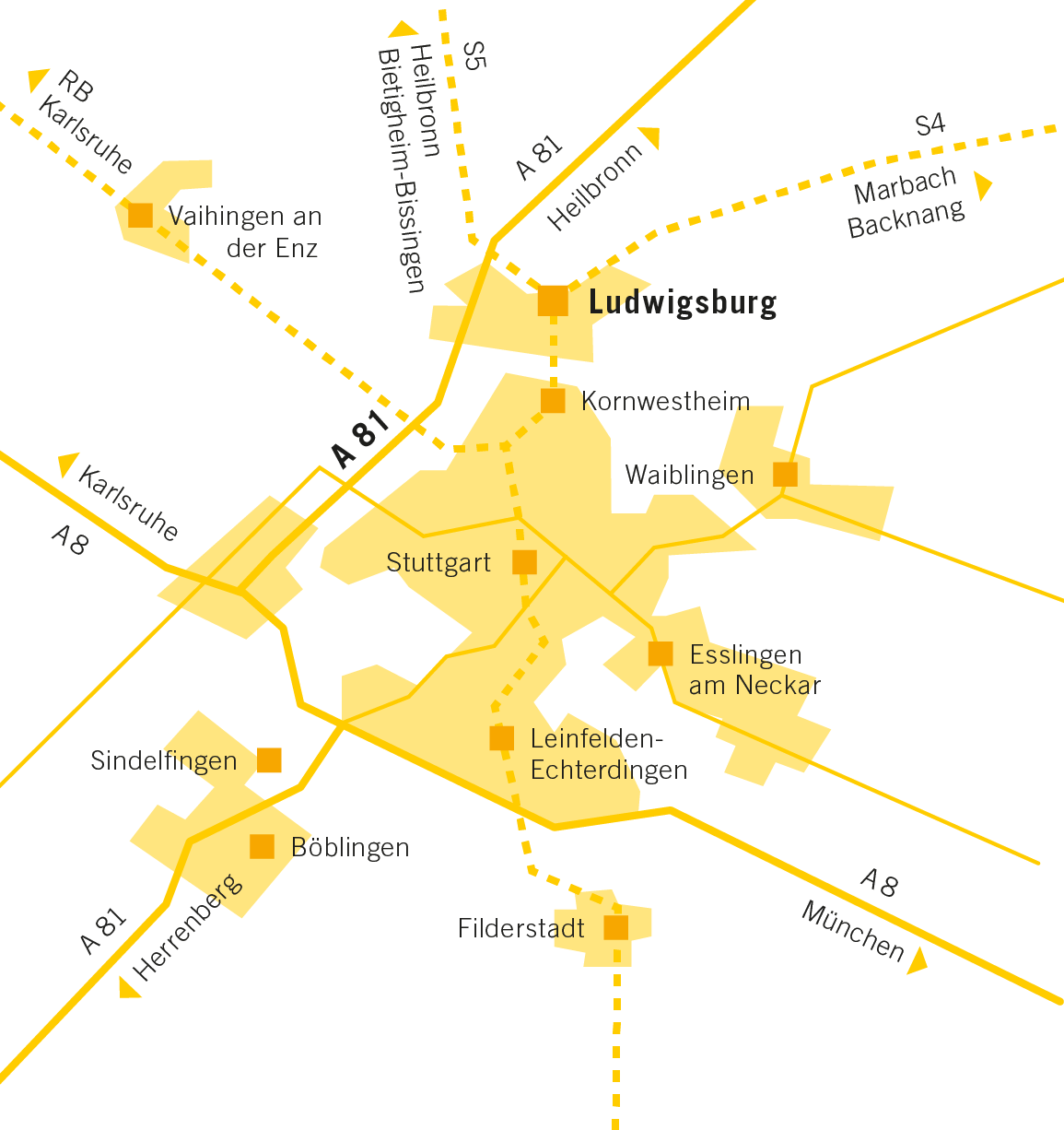 Ludwigsburg ist bequem mit dem Auto, der Bahn oder dem Bus zu erreichen. Auch der Flughafen Stuttgart ist über die S-Bahn komfortabel mit Ludwigsburg verbunden.